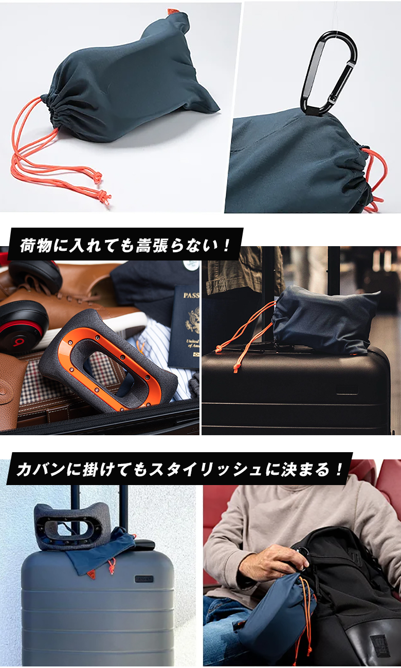 アメリカ医療技術者の知識を集結させた人間工学に基づく独自デザイン。首をラクにまっすぐに固定!従来の旅行用枕に比べ大幅にサイズダウン!嵩張らず荷物もスッキリ&スタイリッシュ!