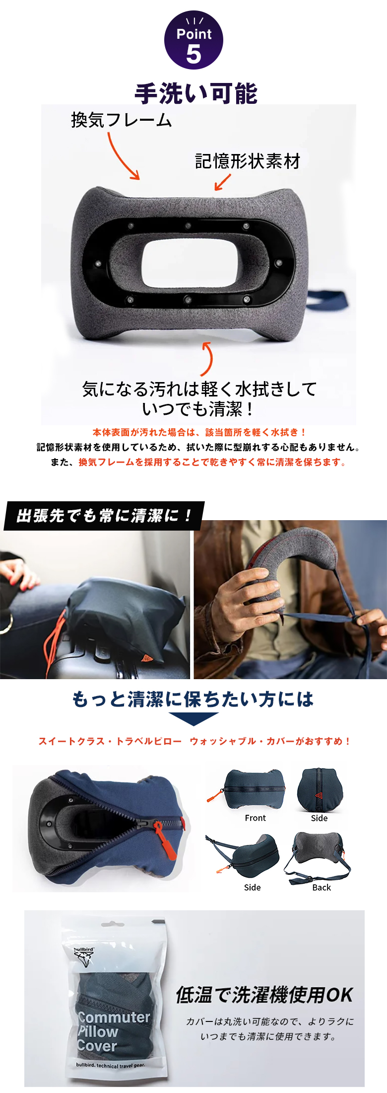 [洗濯]スイートクラス トラベルピロー本体の洗濯機使用は避け、汚れた場合は該当箇所を軽く水拭きしてください。