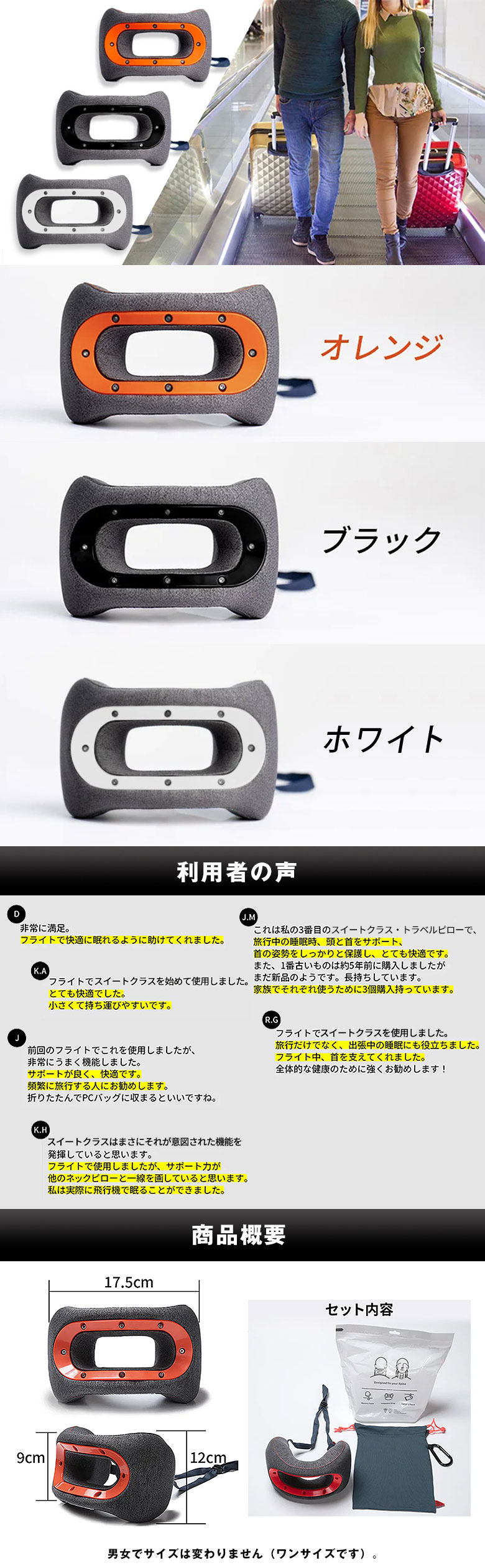 [商品説明]アメリカ医療技術者の知識を集結させた人間工学に基づく独自デザイン。首をラクにまっすぐに固定!従来の旅行用枕に比べ大幅にサイズダウン!嵩張らず荷物もスッキリ&スタイリッシュ!