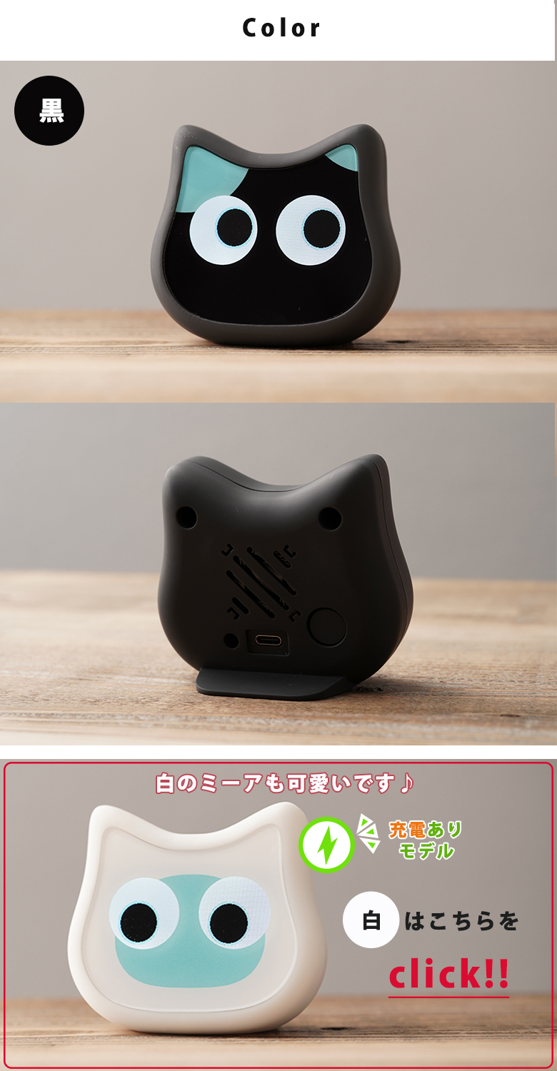 [商品説明]ミーアは、100以上の種類の豊かな表情で、悲しみや喜びを共有します。疲れた時には癒しを、楽しいときには一緒に笑顔を分かち合いましょう。まるで本物の猫のように、喜怒哀楽を豊かに表現し、あなたの心を和ませてくれることでしょう。毎日の生活がもっと楽しく、豊かなものになる、そんなパートナーです。ミーアは、様々な方言と性格でしゃべりかけてきます。