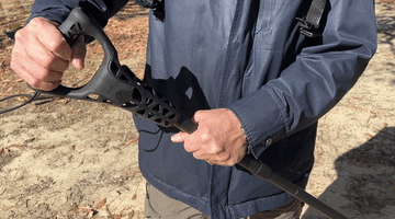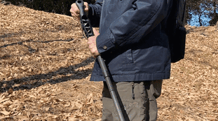 【WALKSIT】は一見すると、ごく普通のウォーキングステッキですが、ハンドル部分を90°回転させると一脚型のチェアに早変わり。