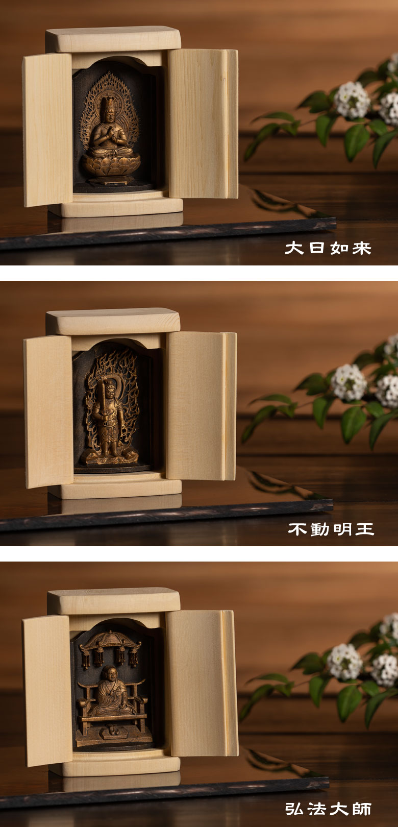 | 素材 | 仏像部/桧(金古美仕上げ)、厨子/桧 |