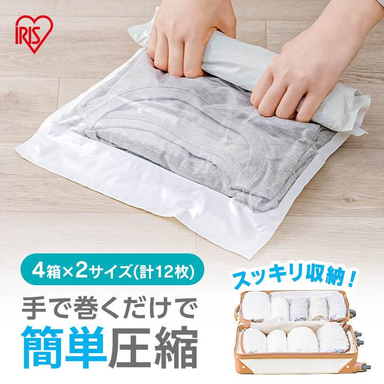 (検索用:衣類圧縮袋 掃除機不要 圧縮袋 手押し 手巻き 旅行 トラベル 服 衣類 収納 パック チャック付き 衣替え セット 12枚入り 4967576698313 4967576698320 4967576698313)