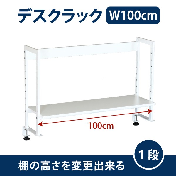 机上ラック モニター台 デスク周り デスクラック 1段 ホワイト クランプ式 可動棚 幅100cm 13-004MH-2 林製作所