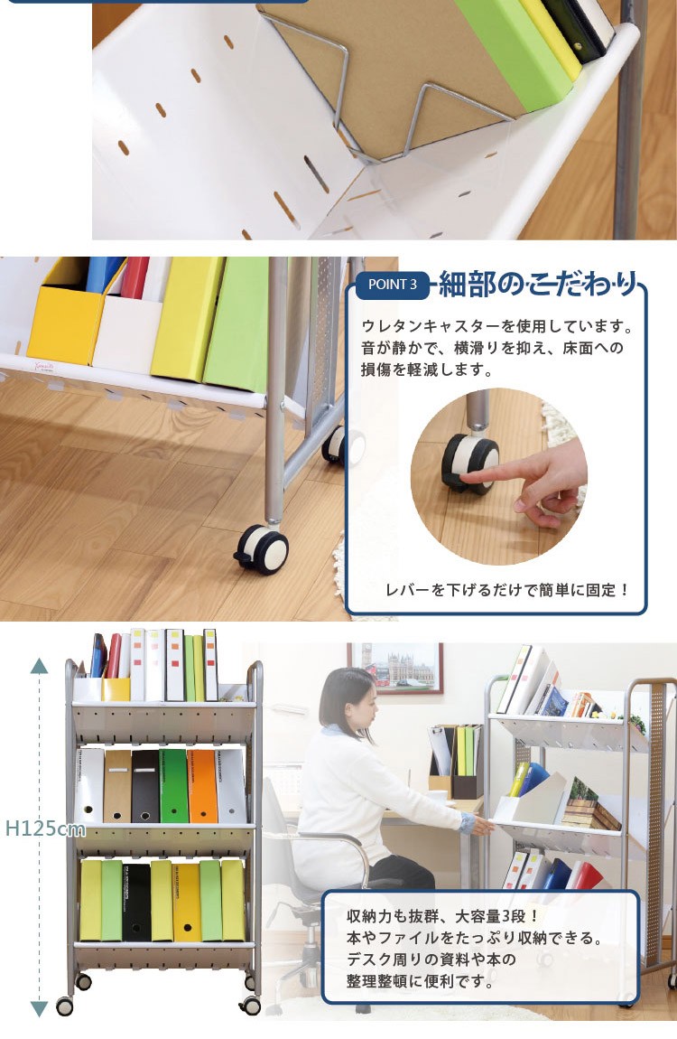 ファイルワゴン デスクワゴン サイドワゴン ファイルラック ワゴン サイドテーブル 3段 キャスター付きワゴン デスク 収納 斜め a4 キャスター付き ファイル