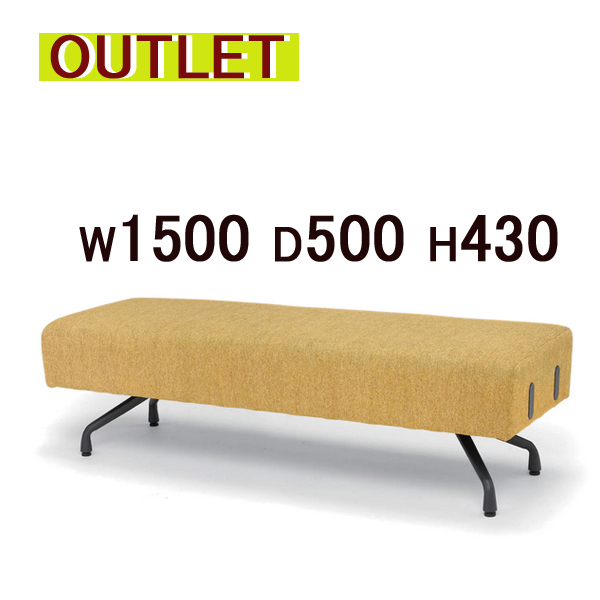 藤沢工業 TOKIO ロビーベンチ 2人掛け 背なしソファ イエロー 黄色 待合椅子 応接 カフェ風 オフィス家具 リフレッシュルーム 1500W アウトレット リユース