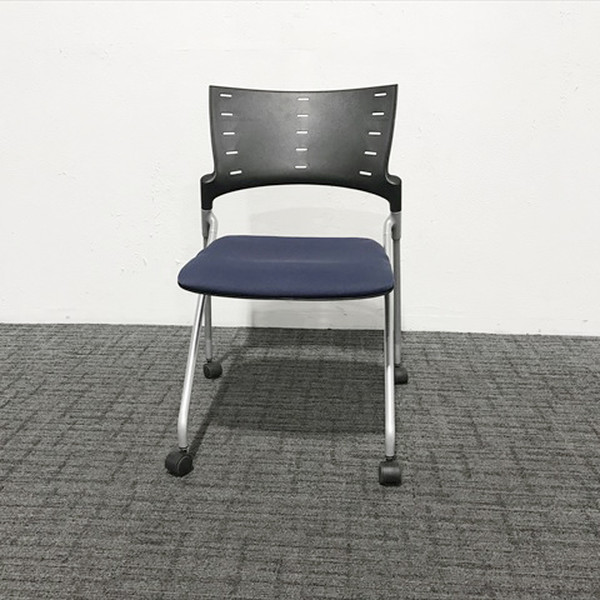 スタッキングチェア 肘無 マノス キャスター付 イトーキ ブルー 中古 IS-873245B