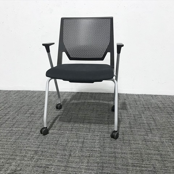 HAWORTH スタッキングチェア 肘付 ベリー サイド セミナーチェア キャスター付 ヘイワース ブラック 中古 IS-876847B