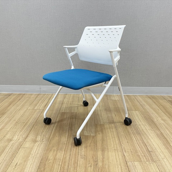 コクヨ 平行スタッキングチェア 肘付 ピエガ キャスター付 会議椅子 ブルー 中古