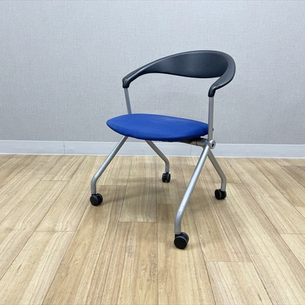 内田洋行 スタッキングチェア ミーティングチェア 肘付 スタッカート キャスター付 ウチダ ブルー 中古 IS-880949B