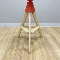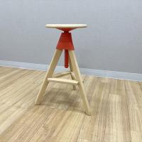 座面はネジを回すことで、最大16cmの高さ調節が可能。シーンを問わず、幅広い用途に対応できます。古典的な作業用スツールの構造を持ちながら、機構部に使われた色鮮やかな樹脂と木の質感との対比が新鮮な印象を与えます。