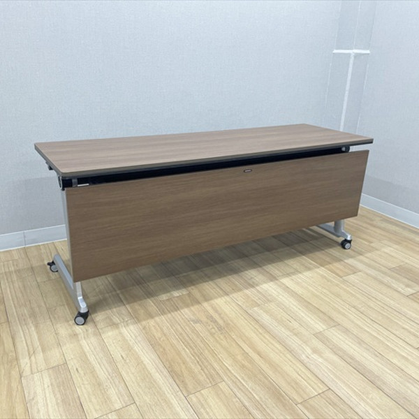 オカムラ 会議テーブル フラップ式 エレガスタ 幕板付 折り畳み W1800 D600 ブラウン 中古 TF-880953B