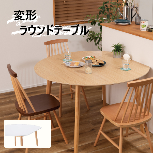 変形 ラウンドテーブル ダイニングテーブル ナチュラル W120 D109 H72 組立式 TMZTAP-003TMZNA TM-043259N
