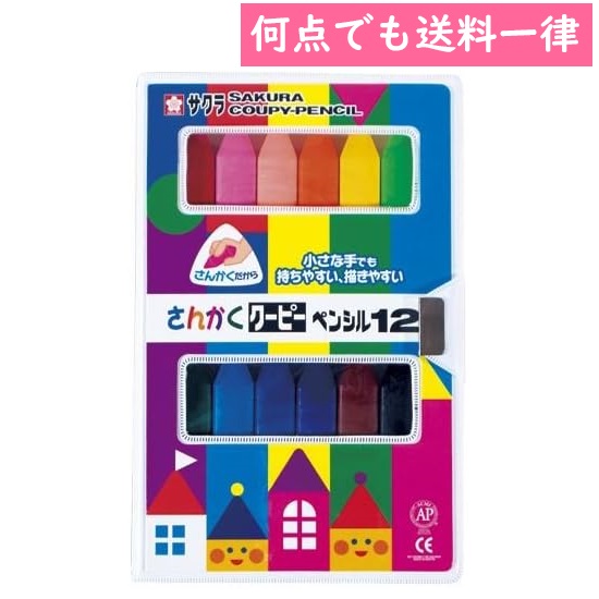 サクラクレパス さんかくクーピーペンシル12 FYL12(12色入)クレヨン イラスト デザイン 塗り絵 工作 知育 幼児教育 水彩 メール便対応