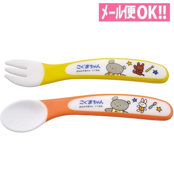 カラフルポップなデザインがキュートなこぐまちゃんのベビースプーン&フォークセットです♪