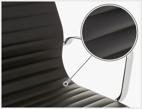 すっきり滑らかな曲線と美しいフォルムが、さまざまな空間で存在感を発揮するデザイナーズチェア。圧迫感のないコンパクトなローバックタイプです。光沢感のあるアルミ仕様の脚やフレームが、レザー調シートのマットな質感を引き立てます。さらにシート全体に規則的にリブを施すことで、いっそう上質なデザインに仕上げました。モダンかつクラシックな印象で、オフィスからホームまで幅広い場面に調和。ブラックとホワイトの2色からお選びいただけます。
