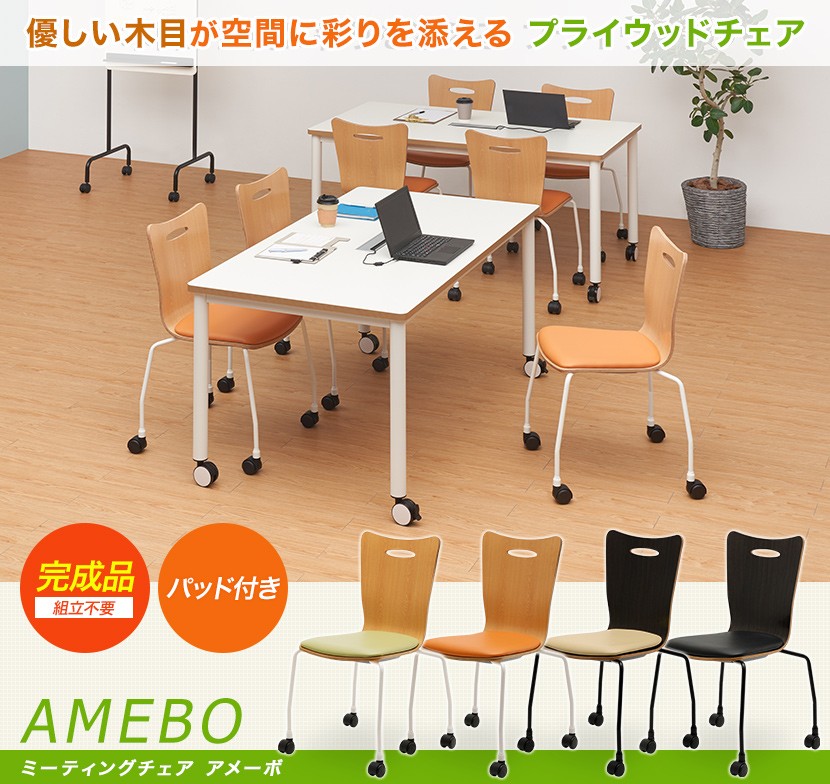 パッド付きで座り心地が柔らかいキャスター付きミーティングチェア