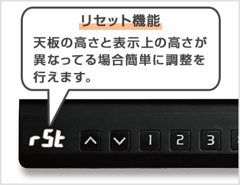 天板の高さと画面表示の高さが異なる場合もボタンの長押しで自身で簡単に修正が可能です。