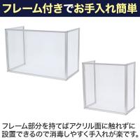 フレーム付きのアクリルなので丈夫で長くお使いいただけます。フレーム部分を持てばアクリル面に手を触れずに設置できるので、アクリル面が汚れにくく、消毒もしやすい構造で手入れが楽です。