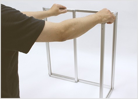 | 仕様 | フレーム / アルミ押出材、アルマイト仕上 面板 / 1.5mm透明アクリル3枚 コーナー / 亜鉛ダイカスト塗装仕上 |