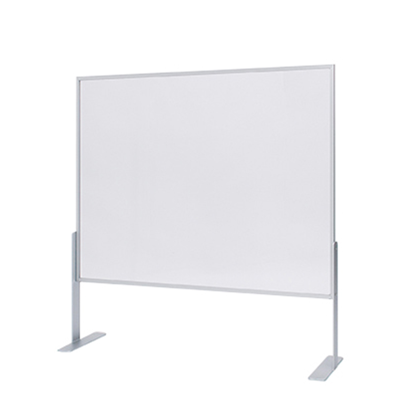 工事や取り付け加工も不要で、簡単に設置や移動ができる高さ900mmの飛沫防止パーテーションです。フレーム付きのアクリルなので、丈夫で長くお使いいただけます。またフレーム部分を持てばアクリル面に手を触れずに設置できるので、アクリル面が汚れにくく消毒がしやすいです。パネル下にはワイドな開口があり、書類等の受け渡しもスムーズにできます。
