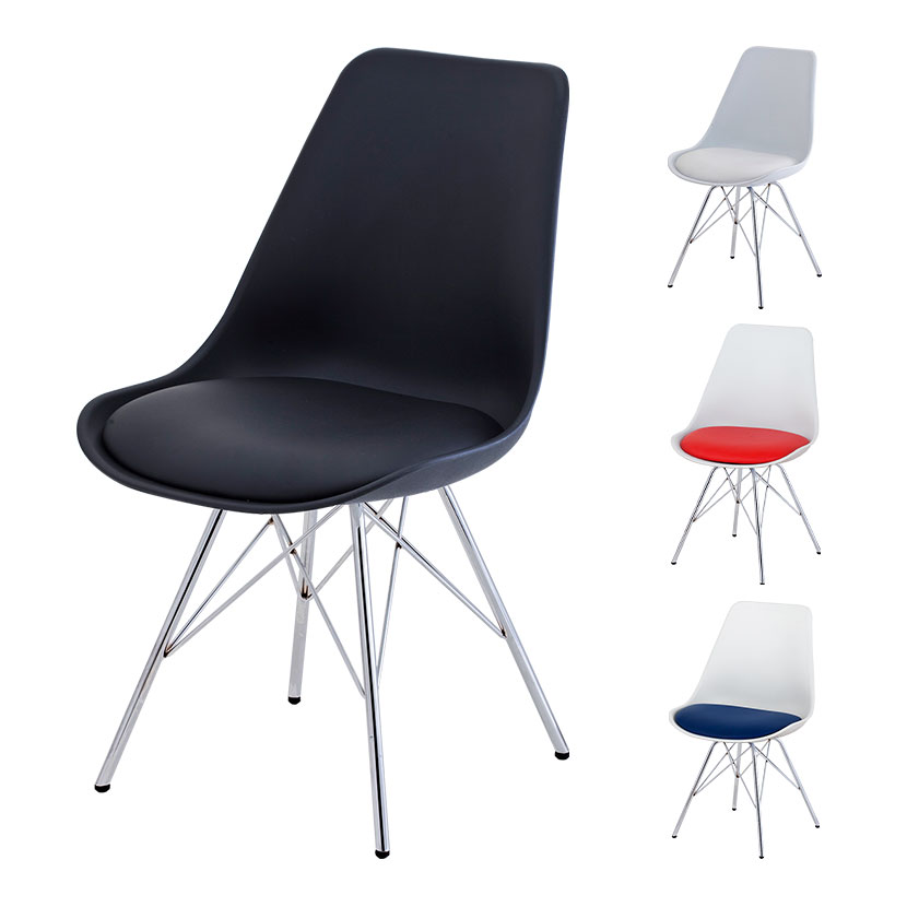 | 材質 | 本体:ポリプロピレン、張地:PUレザー、脚:スチール(クロームメッキ) |
