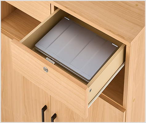 小物の収納に便利な引出しを装備。共用の文具や備品の保管など、フレキシブルに活用できます。