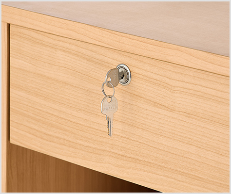引き出しには、セキュリティ性を高めるシリンダー錠が付いています。書類の収納や保管にも適しています。