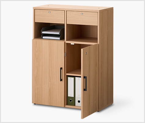 バリエーション豊富で、組み合わせいろいろ。オフィス収納一式を手軽に取り揃え