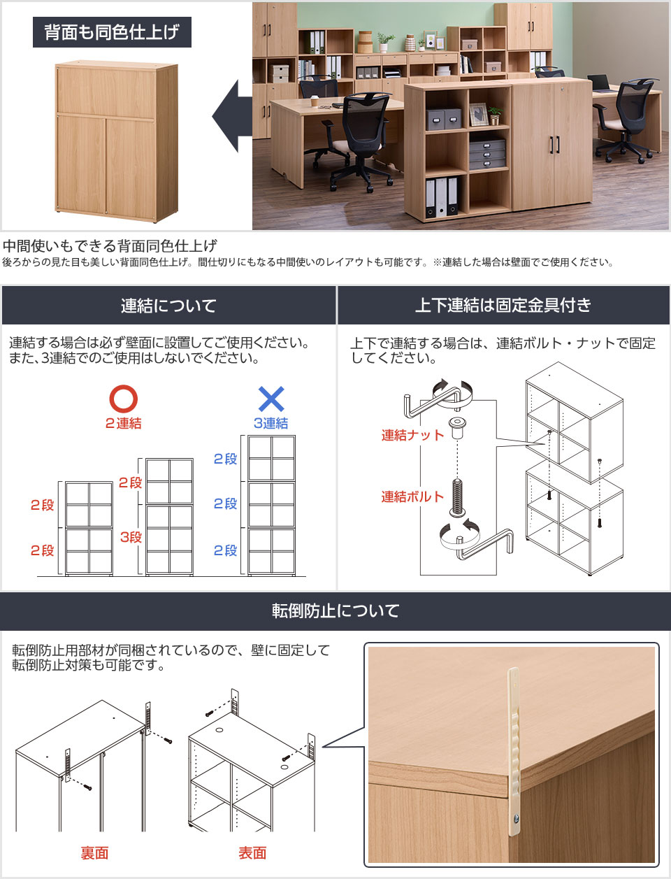 上下にキャビネットを積み重ねる際は、ナットとボルトで連結してご使用ください。しっかりと固定でき、安定性が高まります。