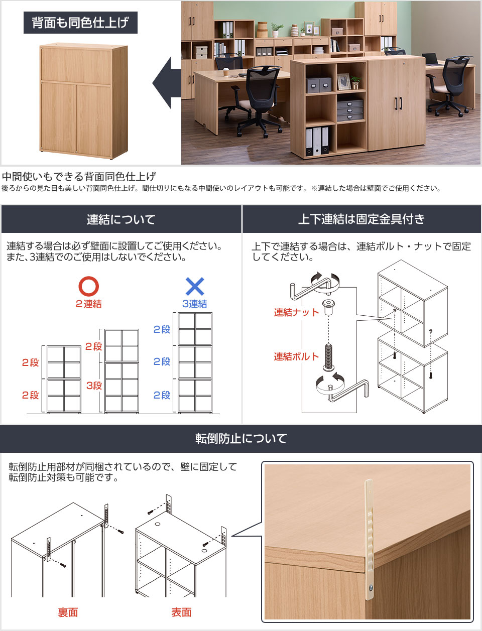 上下にキャビネットを積み重ねる際は、ナットとボルトで連結してご使用ください。しっかりと固定でき、安定性が高まります。