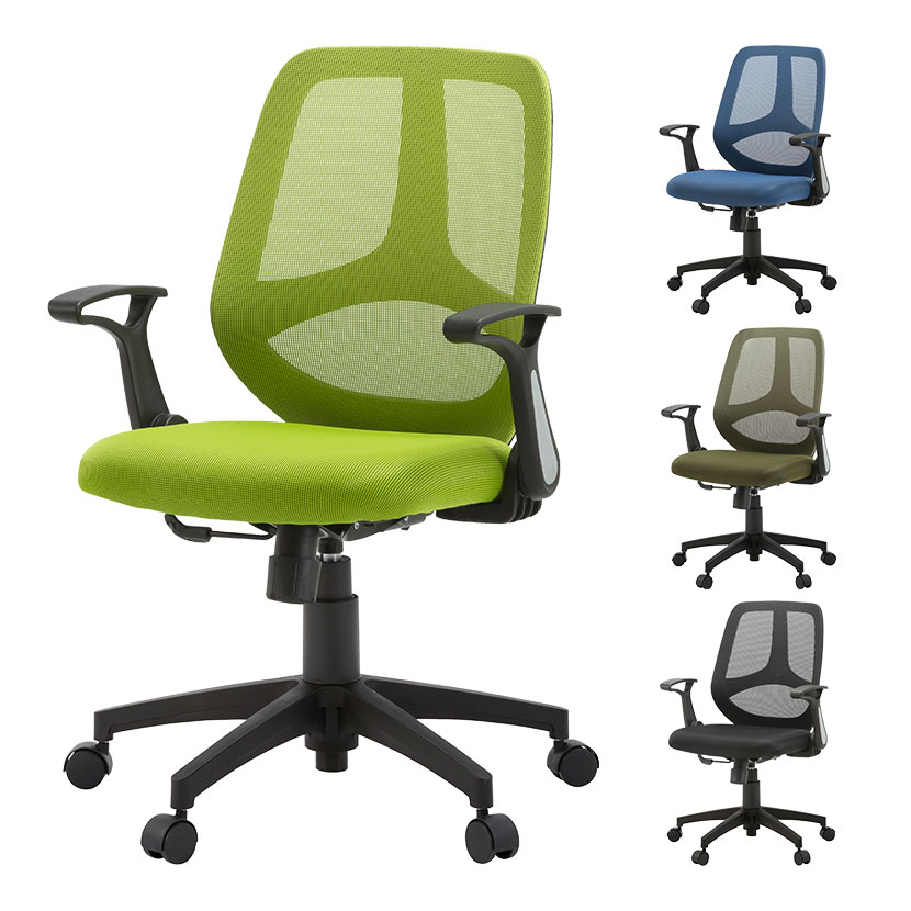 デザイン性豊かなカーブフレームは、背もたれとの間に風を通す流れを生み出します。座面はもっちりウレタン×二重メッシュ生地でムレを防ぎ、快適な座り心地に。独立した背座が同調して動く優れたシンクロロッキング機能を搭載し、体への負担が少ない楽な姿勢でリラックスできます。肘掛けは跳ね上げ式可動肘なので、座る時は肘をおろして腕置きに、机に収める時は上げて収納が可能です。スポーティかつカジュアルなデザインの全4色展開です!