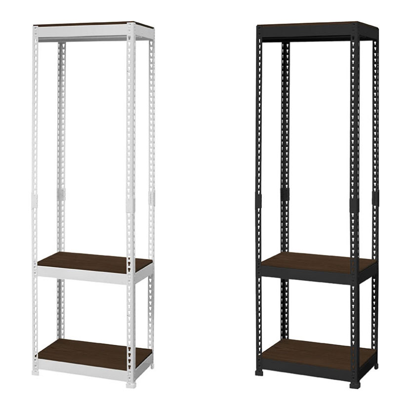 | 材質 | 支柱・ブラケット / スチール(粉体塗装) 脚カバー / ポリプロピレン 棚板 / 合成樹脂化粧繊維板(塩化ビニール) ハンガーバー / ステンレス |