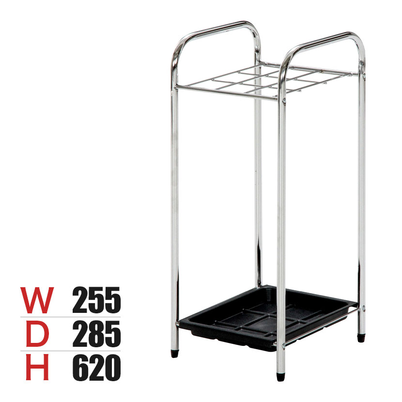 傘立て 傘置き 9本用 シンプル クロームメッキ仕様 アンブレラスタンド 仕切り付き 受け皿付き コンパクト 幅255×奥行285×高さ620mm