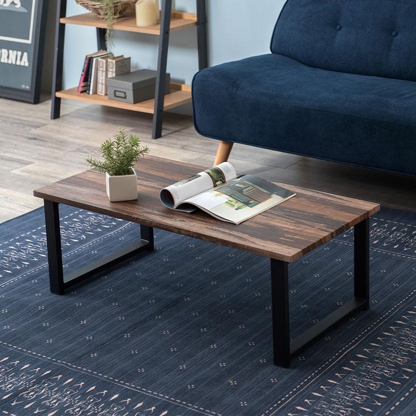 リビングテーブル 木製 ローテーブル センターテーブル 長方形 耐水性 撥水 スチール脚 コンパクト 木目調 シンプル 幅900×奥行450×高さ320mm