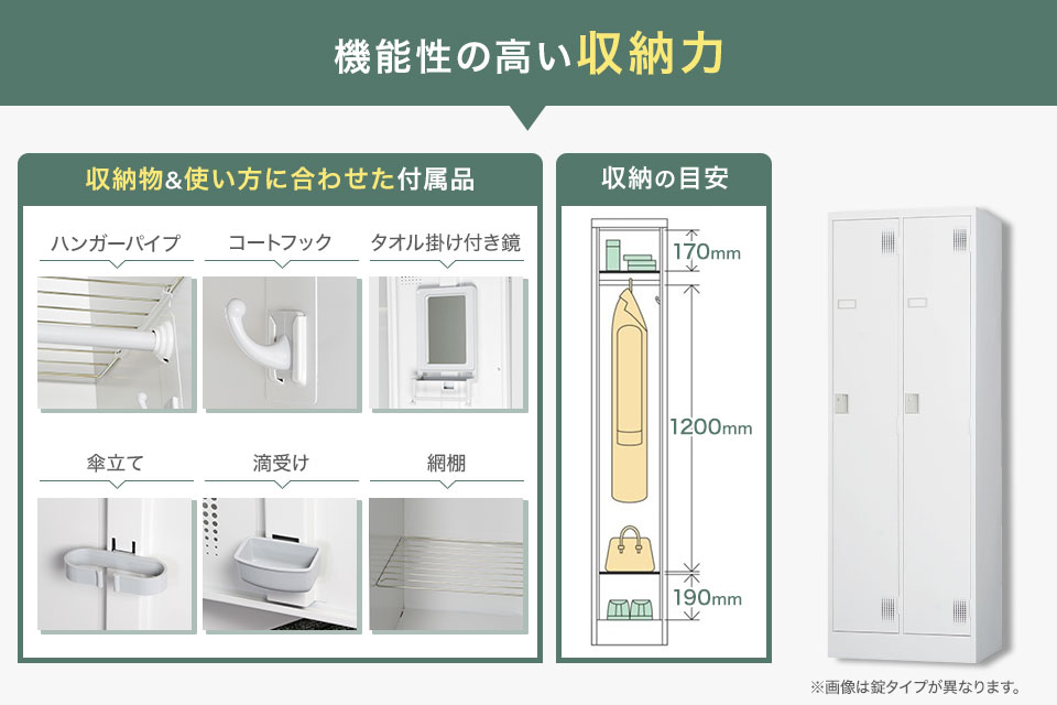 コートやスーツ、制服や作業着、靴、小物などの収納に加えかばんの収納などシーンに合わせて選択できる種類の豊富なTLKシリーズ。清潔感があるホワイトグレー・洗練されたマットブラックの2色で展開しています。