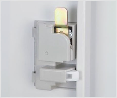 扉が閉まった状態で保持できる留め具(キャッチ)付き。扉が自然に開くことを防止します。