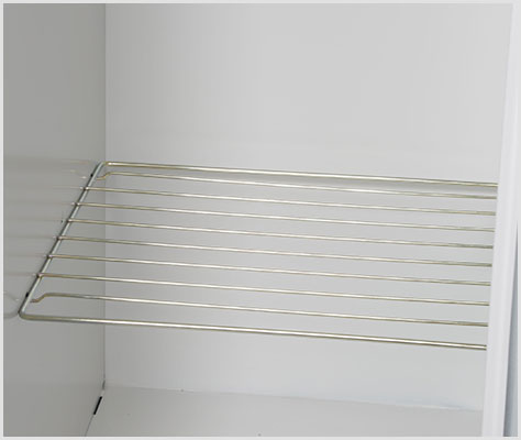 内部は網棚で3段に分かれ、上段には小物、中段にはロングコートやかばん、下段には靴などを収納できます。