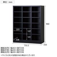 | サイズ(その他) | 内寸(1箇所あたり) / 幅223×奥行338×高さ127(最下段141)mm 棚板 / 幅263(右)・243(中央)・243(左)×奥行338mm |