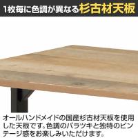 | ご注意 | 基材の杉古材により、色調に大きなバラツキがございます。 天板1枚ごとに明暗・色相などが異なりますが、あえて風合いをそのままにしておりますのでご了承ください。 |