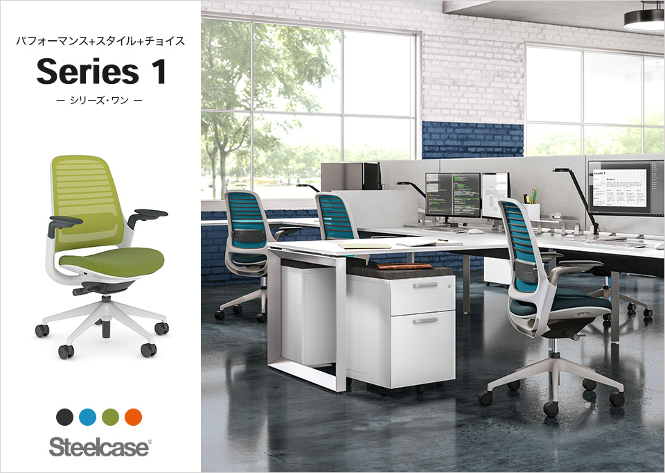 Steelcase Series1は、様々なユーザー向けにSteelcaseが新たに生み出した新クラスのチェア。Steelcaseの知識と技術を結集させ、パフォーマンス、スタイル、チョイスといった今日のワークチェアに求められる要素を取り入れました。