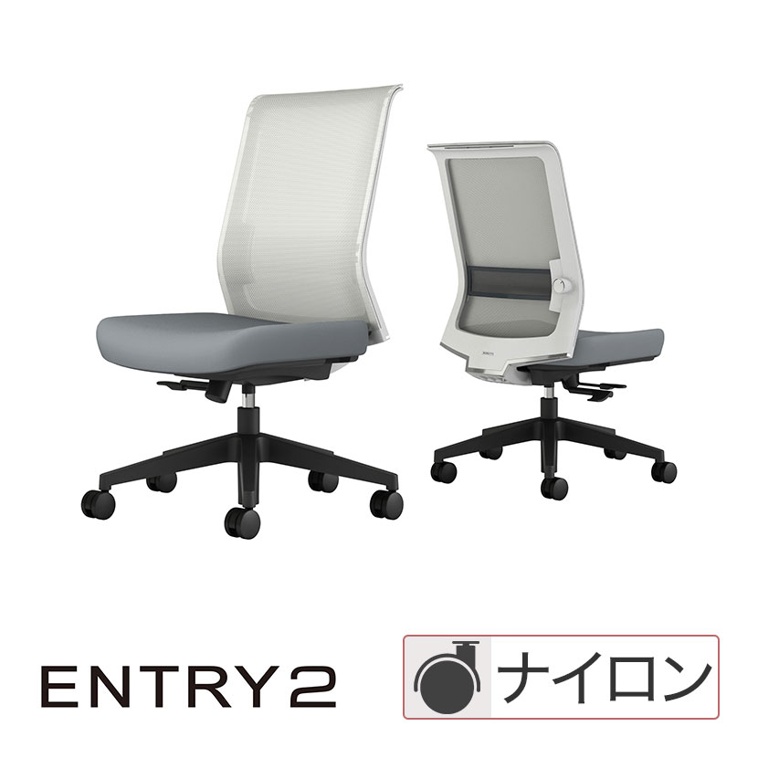 コクヨ エントリー2 ENTRY2 オフィスチェア 樹脂脚 ホワイトフレーム 肘無し 座グレー ナイロンキャスター デスクチェア メッシュチェア CCR-ET2P303M-WN