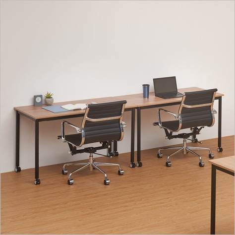 作業台としても使いやすく、複数合わせればワイドに活用できるキャスター付きテーブル。ワークデスク・パソコンデスクなどマルチに使用できます。レイアウト変更にも柔軟に対応し、コワーキングスペース・フリーレイアウト仕様にもおすすめ。温かみある木製天板のエッジをプライウッド風に仕上げ、デザイン性を高めたモダンなブルックリンスタイルです。