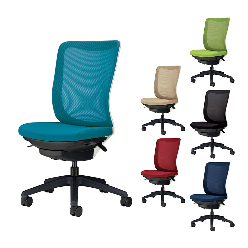 オフィスチェア Leios レイオス 背メッシュ 座面布張り アームレス シンクロロッキング機構 高さ調節 体圧分散 ホワイトフレーム ブラック脚 No.3540F-K
