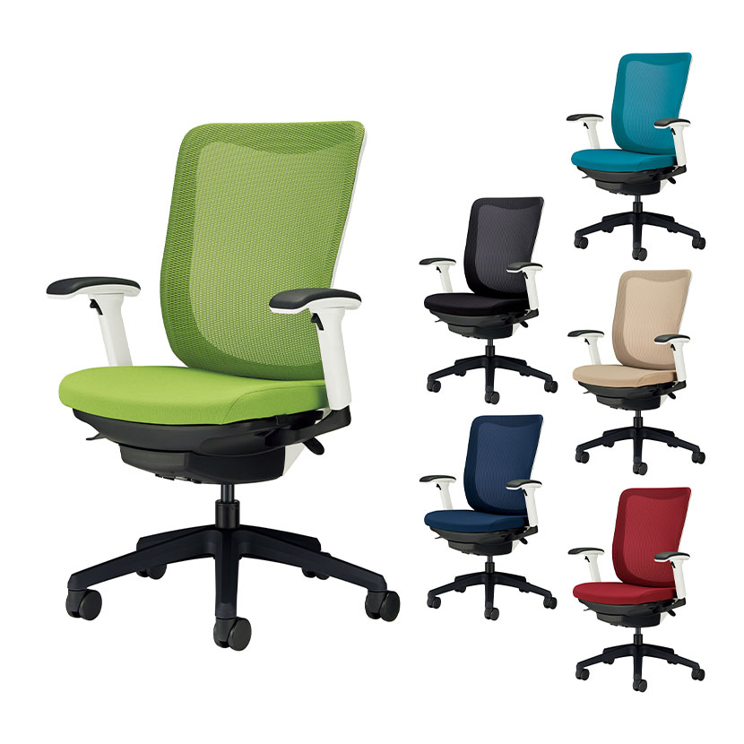 オフィスチェア Leios レイオス 背メッシュ 座面布張り フレキシブルアーム シンクロロッキング機構 高さ調節 体圧分散 ホワイトフレーム ブラック脚 No.3542F-K