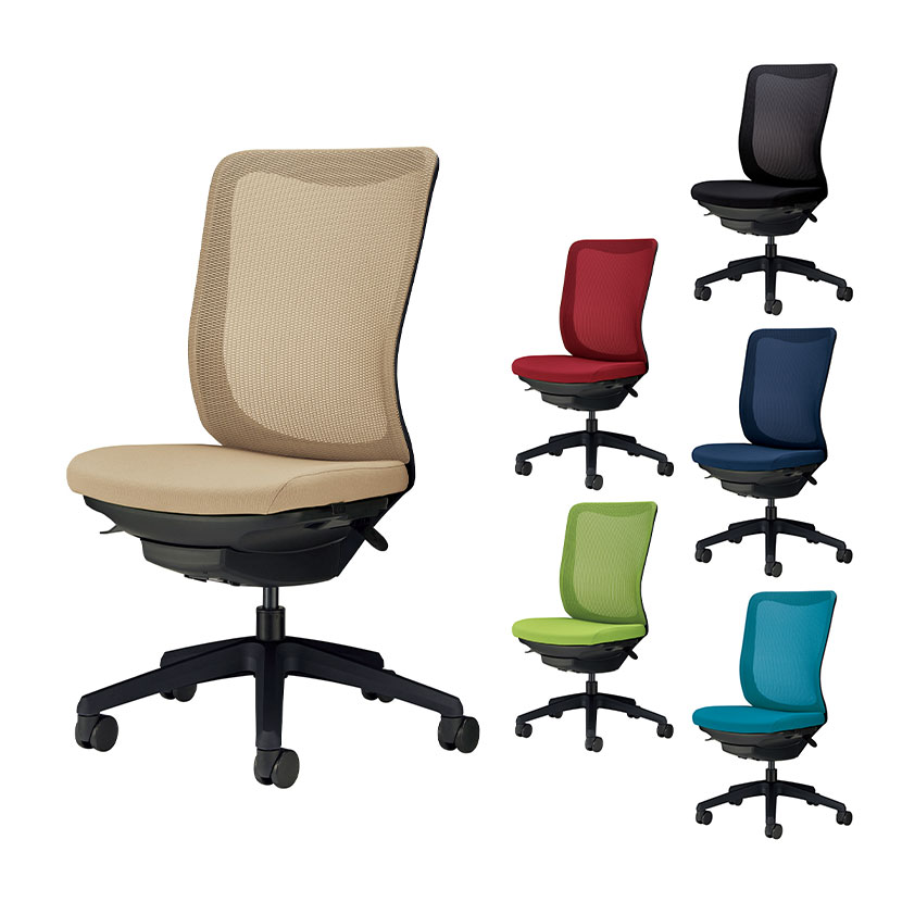 オフィスチェア Leios レイオス 背メッシュ 座面布張り アームレス シンクロロッキング機構 高さ調節 体圧分散 ブラックフレーム ブラック脚 No.3545F-K
