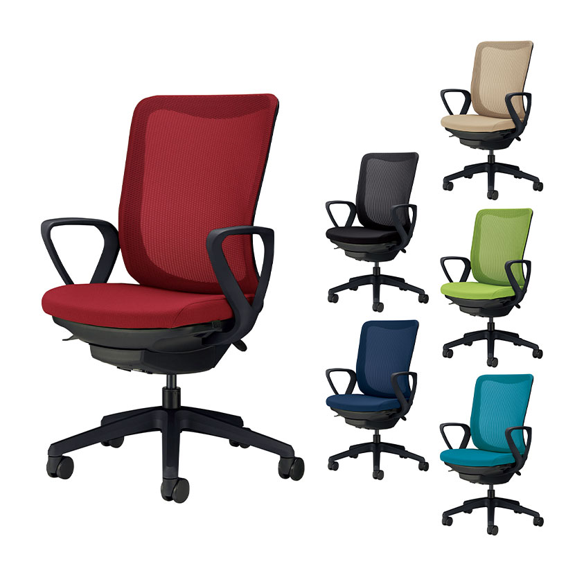 オフィスチェア Leios レイオス 背メッシュ 座面布張り サークルアーム シンクロロッキング機構 高さ調節 体圧分散 ブラックフレーム ブラック脚 No.3546F-K
