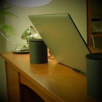 サイズ | アンプ / 幅25×奥行80×高さ85mm(つまみ含む) スピーカー / 直径90×高さ110mm |