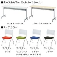 片手でラクラク折りたためるフォールディングテーブルと、彩り多彩なミーティングチェア、プレソナをセットでお届けします。チェアは、柔らかなライトグレーとシックなブラックの2色をベースに、個性ある4色の座面カラーからお選びいただけます。
