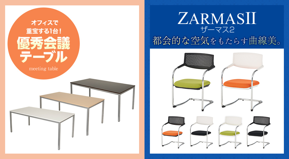 多様なスペースに馴染むスタンダードな会議テーブルと、都会的な空気をもたらす曲線美が特徴のザーマスチェアをセットでお届けします。チェアはスタッキングしてコンパクトに収納が可能。オフィス空間だけでなく、多様なシーンで活躍します。